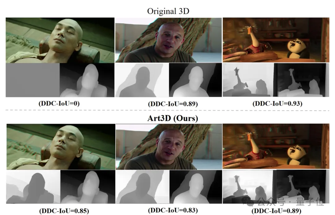 团队还开创性提出DDC-IoU(深度-视差一致性交并比)指标,精准过滤院线原片中的劣质低质片段,剔除那些视差混乱、毫无艺术价值的废片,提纯含优质立体叙事的高质量数据,从源头避免模型学习无效内容,保障生成内容兼具几何严谨性与院线级艺术质感。