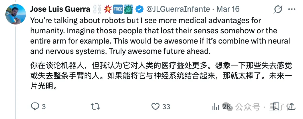 它对人类医疗也有好处,比如帮助那些丧失神经感知或失去整条手臂的人重新找回触觉。