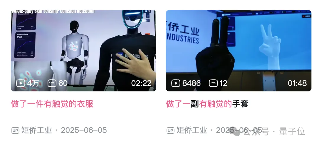 2025年,他们在B站发布了《做了一件有触觉的衣服》《做了一副有触觉的手套》等一系列视频,详细展示了机器人穿上电子皮肤的玩法。
