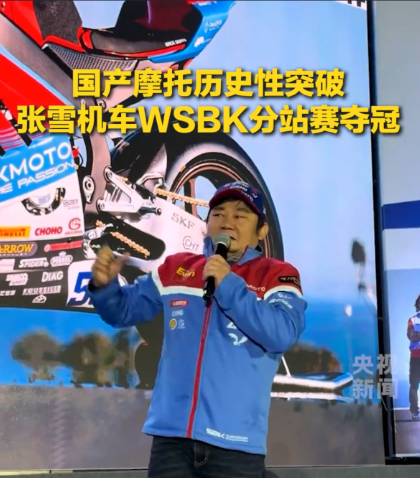 他的车队,在这个被杜卡迪、雅马哈、川崎、铃木垄断了30多年的赛事中,连夺两回合冠军。法国车手瓦伦丁·德比斯驾驶着张雪机车的820RR-RS赛车,在SSP组别一路领跑,冲过终点线。