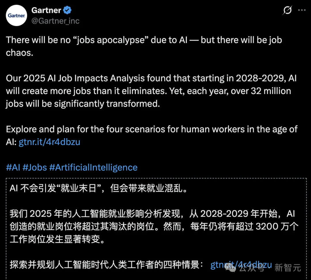 2025年美国已有近5.5万岗位被AI直接蒸发,但咨询巨头Gartner扔下一句重磅:没有就业末日,只有「岗位狂飙」的阵痛期,你准备好被砸碎再重铸了吗?
