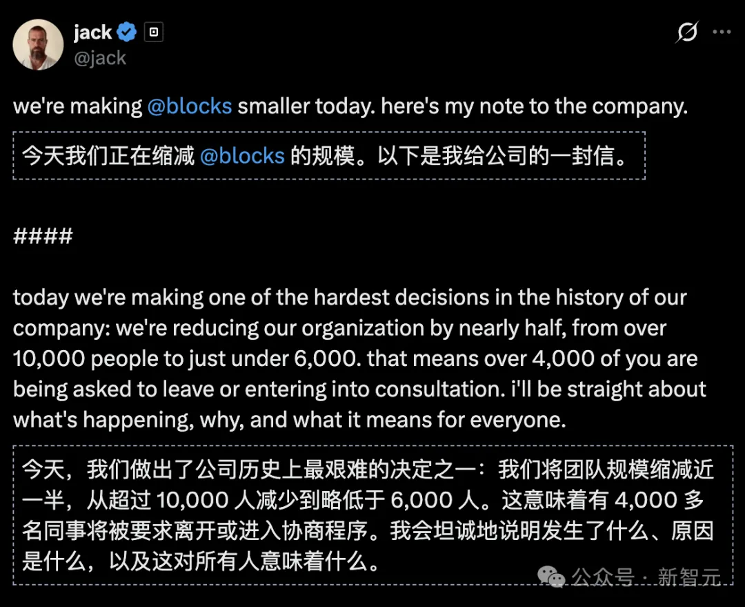 硅谷支付巨头Block创始人Jack Dorsey一封全员信,一刀砍掉40%+的员工。