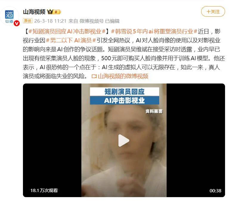 值得注意的是,田园并非首个公开谈及行业困境的短剧演员。在她之前,已有多位演员公开谈论AI技术对短剧行业的冲击。随着AI换脸、数字人等技术日益成熟,短剧演员正成为首批面临被替代风险的群体之一,这加剧了行业内部对生存空间与艺术价值的普遍焦虑。