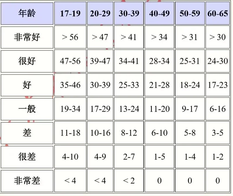 通过下面这张表并结合自己的年龄来自测一下吧!