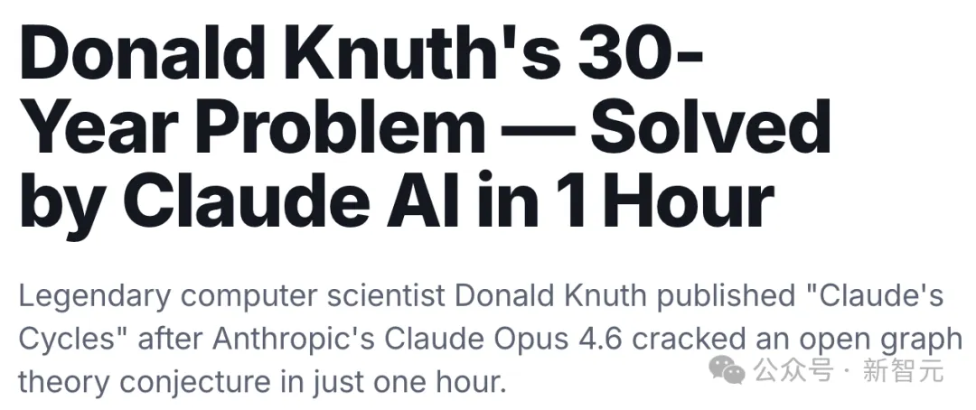 三周前,「算法祖师爷」、图灵奖最年轻的得主高德纳被Claude震惊:一个悬了多年的算法难题,竟被Claude Opus 4.6解决了。