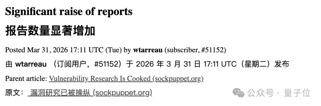 Linux内核维护者崩溃了:AI每天狂塞10份漏洞报告量子位