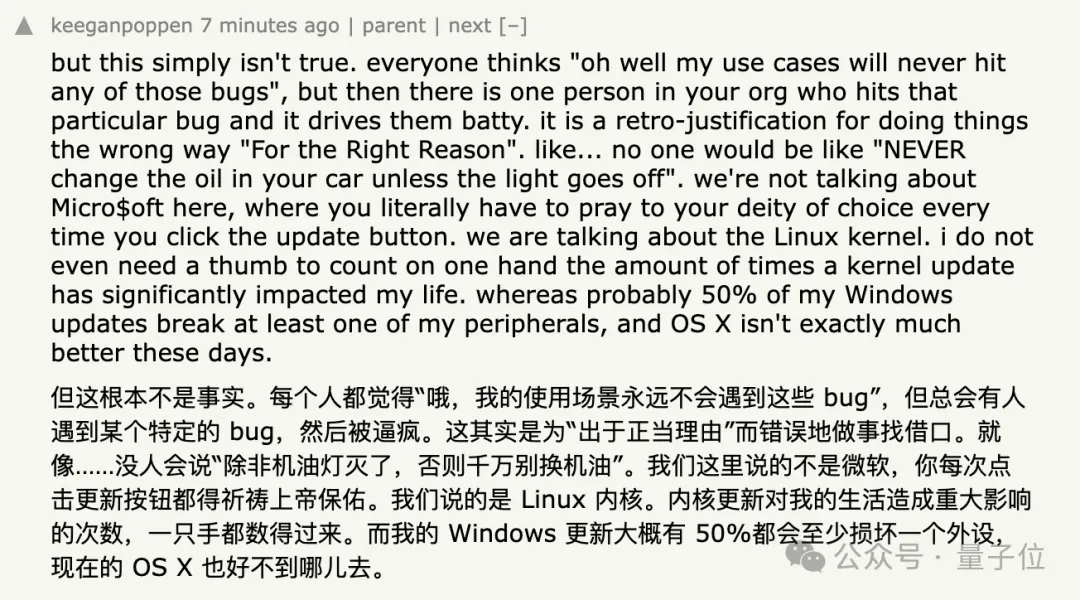 他直言这些Linux开发者纯粹是在自我感动,有些缺陷根本无人在意,盲目升级反而会带来兼容性灾难。
