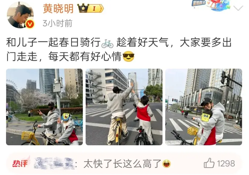 黄晓明本想晒父子骑行有多温馨,结果评论区变成普法现场。4月5日,#黄晓明带9岁娃骑行再温馨也违法#冲上微博热搜。