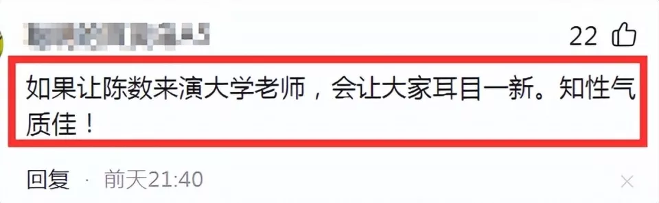 甚至有网友觉得,“如果让陈数来演大学老师,会让大家耳目一新,知性气质佳!”