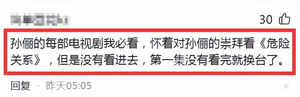 可意外的是,孙俪在东方卫视、江苏卫视、北京卫视播出的新剧《危险关系》,竟然毫无水花,甚至还有不少观众一集没看完就换台了。