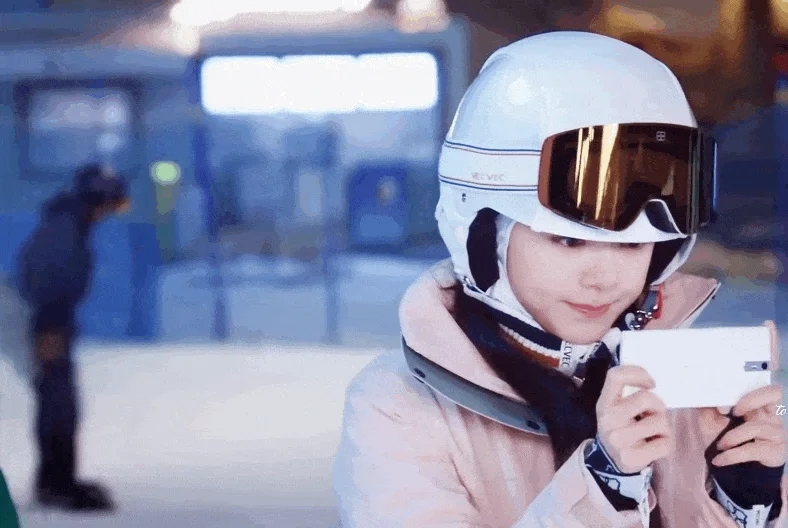 看到姐姐在雪场里给男二和同事拍照,手都冻红了。