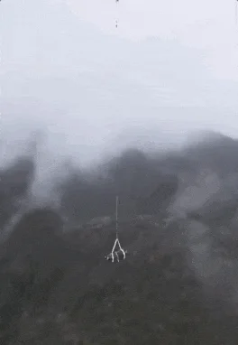 随着飞往天国的无人机缓缓启动,在亲人们的仰视下,棺材腾空而起,消失在水汽氤氲的山间。