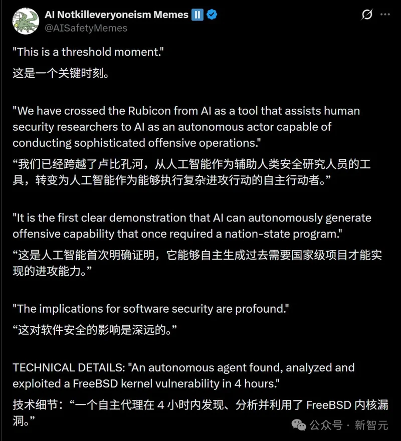 这行简短的文字背后,隐藏着一个极其恐怖的事实:AI已经进化成能在安全领域独立刺杀的特种兵。