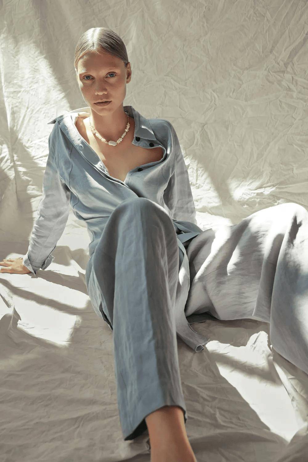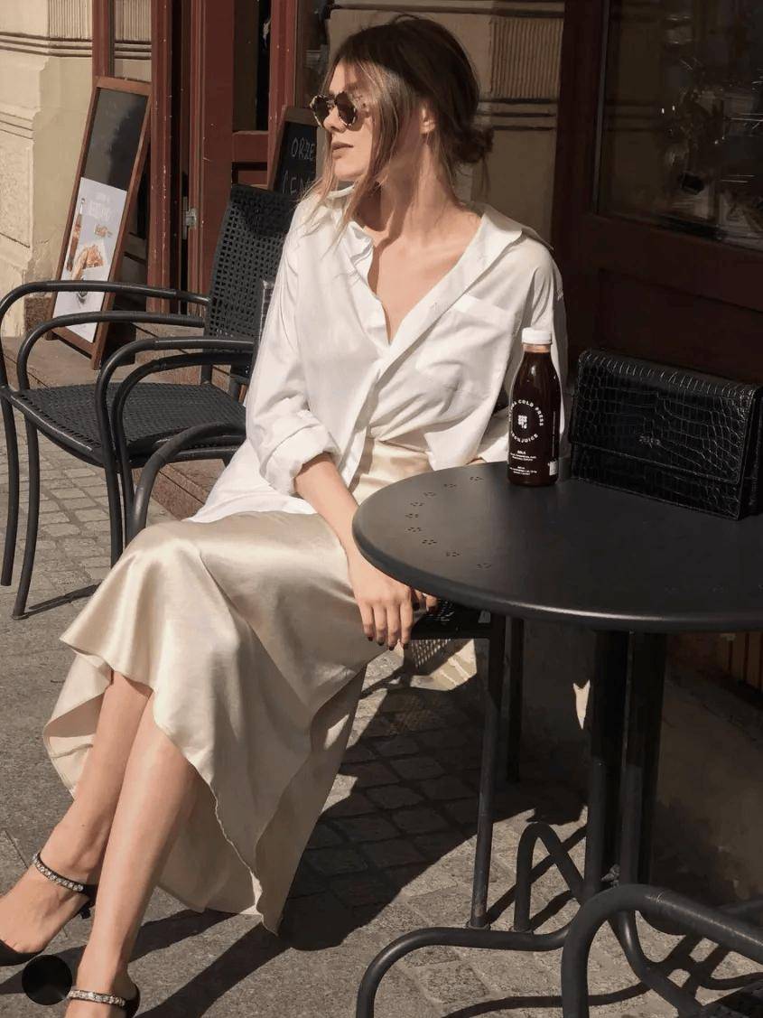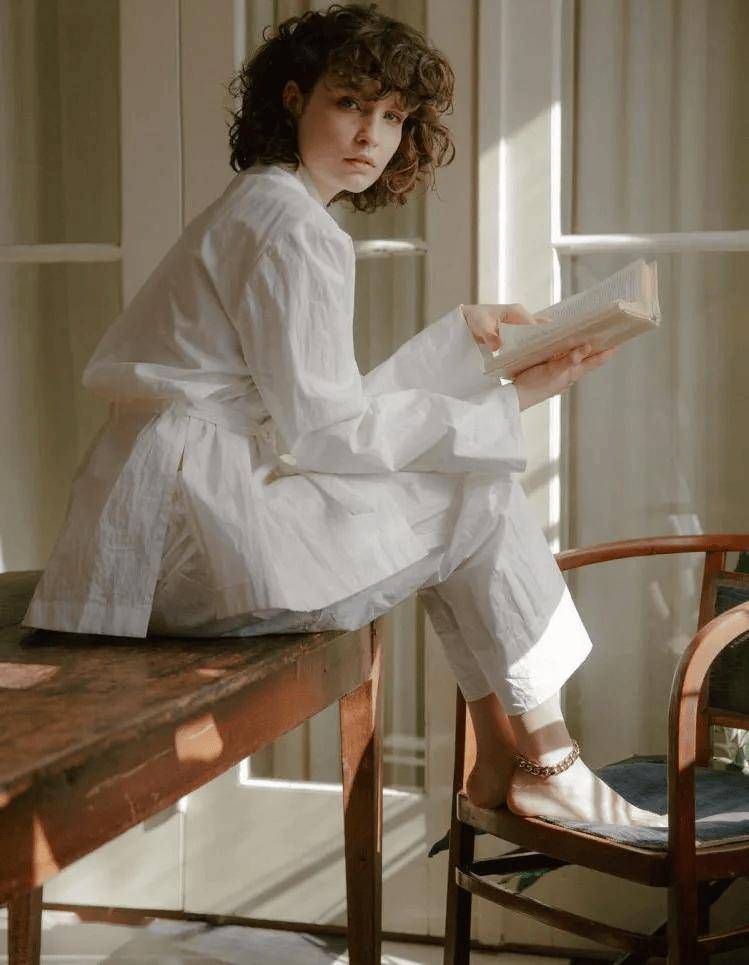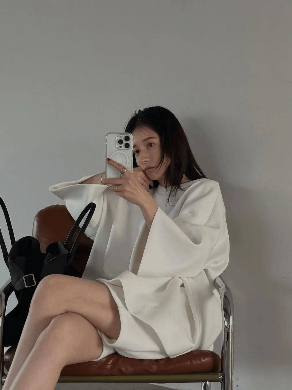 真正懂得宽松之道的女性深谙“藏与露”的平衡智慧:露出一截纤细的脚踝、一对清瘦的锁骨,或是一段伶仃的手腕——让阳光亲吻身上最精致的那片肌肤,而其余部分则交由如云似雾的布料轻柔覆盖,形成一幅疏密有致、含蓄高雅的视觉画卷。