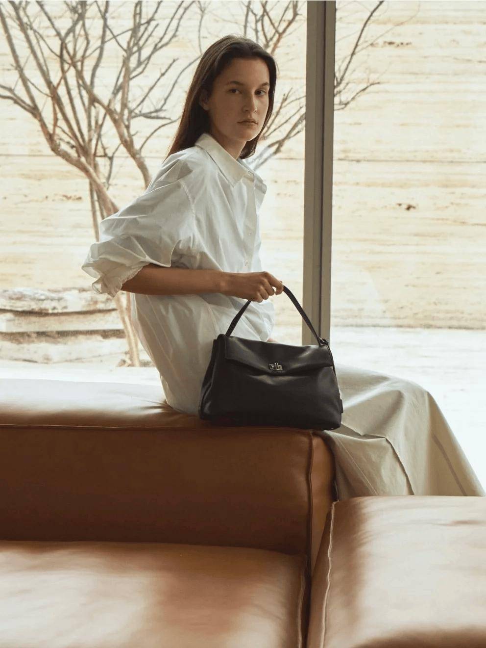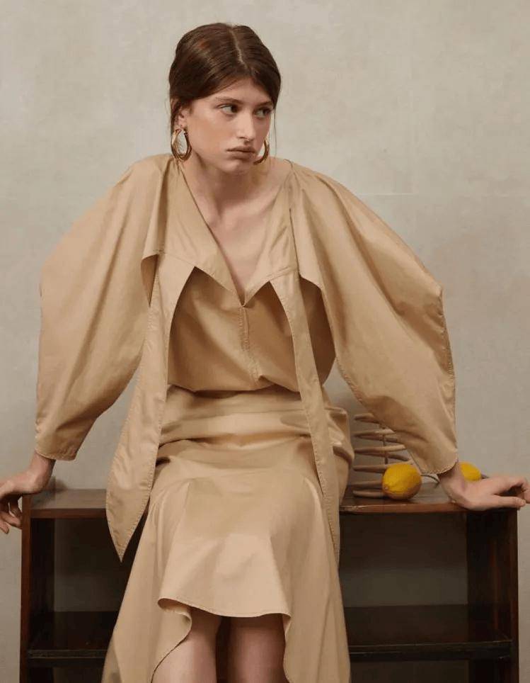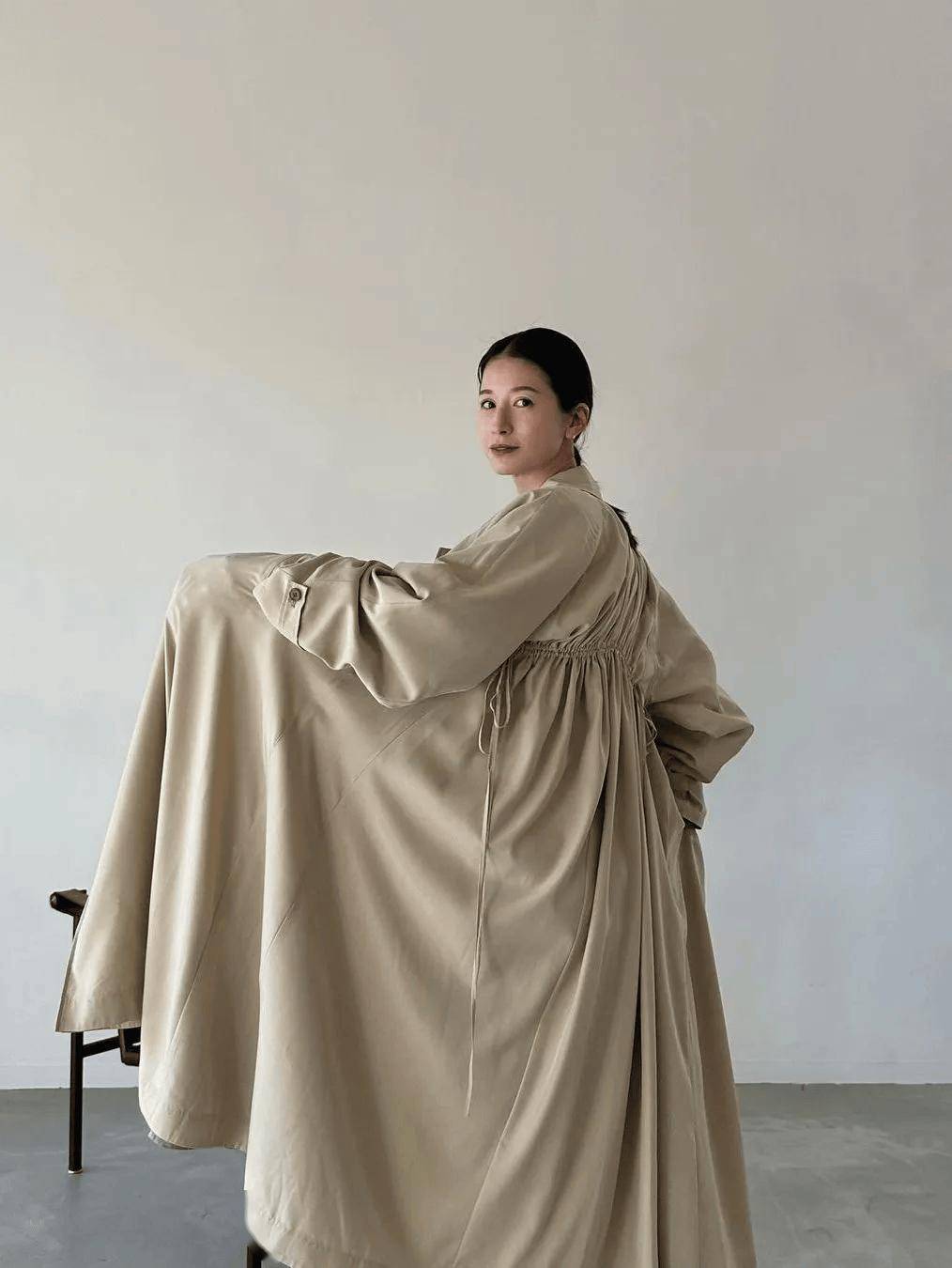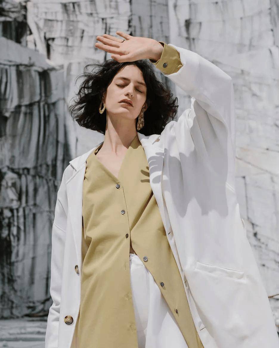 H型剪裁则延续流畅的直线条,淡化腰线存在感,以垂坠而下的纵向延伸感,塑造出修长挺拔的视觉效果。在这类宽而不垮的版型之下,具体的身形细节悄然隐去,而个人气质与气场却得以清晰浮现。