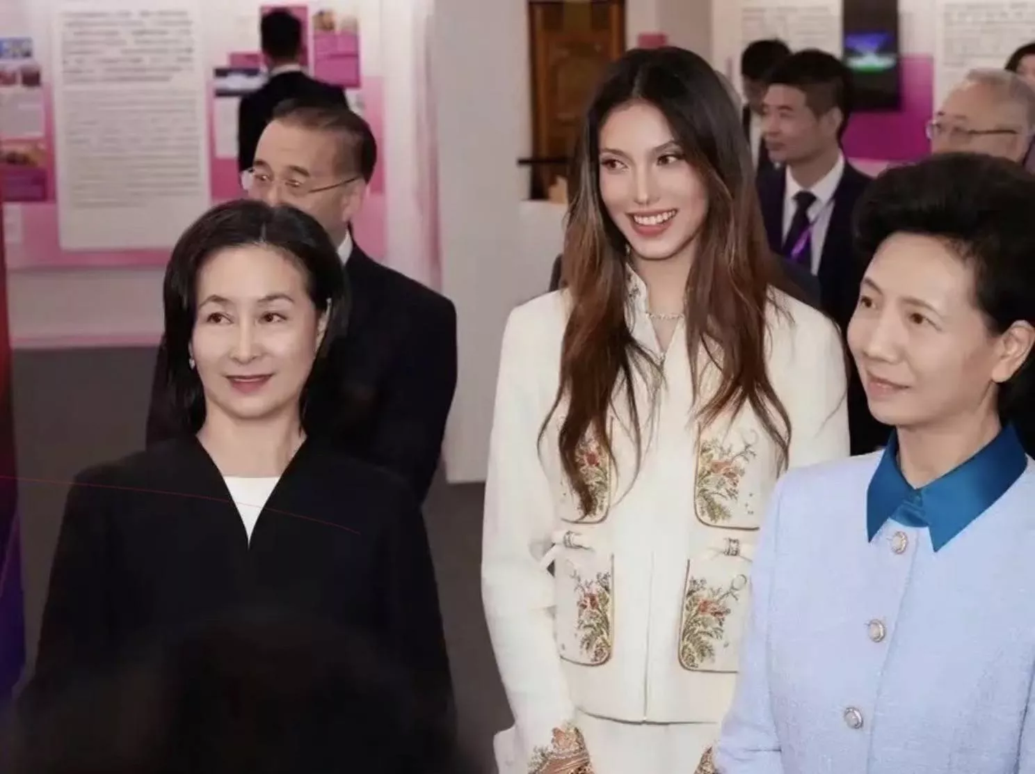 由于谷爱凌是特邀嘉宾,所以备受活动方的重视,还安排了重量级人物陪同,在场陪同谷爱凌母女的就有何超琼、郭晶晶,以及中华妇女联合会主席等。何超琼当天身穿黑色裙装,这一身打扮显得大方、优雅,正式得来也不会过分商务,还别说她的状态可真好,尤其在仪容仪表方面毫无挑剔。而郭晶晶亦是如此,她身穿了黑色连身裙现身,还披了一件浅绿色的外套,大气、沉稳,同样出众。郭晶晶与何超琼过往甚少同场出席活动,就不要说合照了,此次两人难得一同现身,并且是以陪同的身份陪伴宾客,也堪称罕见。