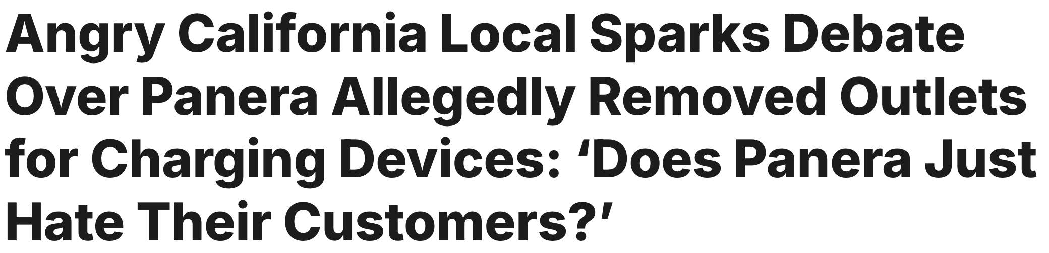 据4月2日报道 “点一杯咖啡,却连电都不给?这是在赶人走吗?”一名加州网友在社交平台上的吐槽,道出了无数人的不满,也点燃了这场围绕“插座消失”的全美争议。近日,加州一家靠近大学的Panera Bread被网友曝光:店内几乎所有插座被拆除,并用空白面板封死。这一变化迅速在Reddit上发酵,引发数万网友讨论。