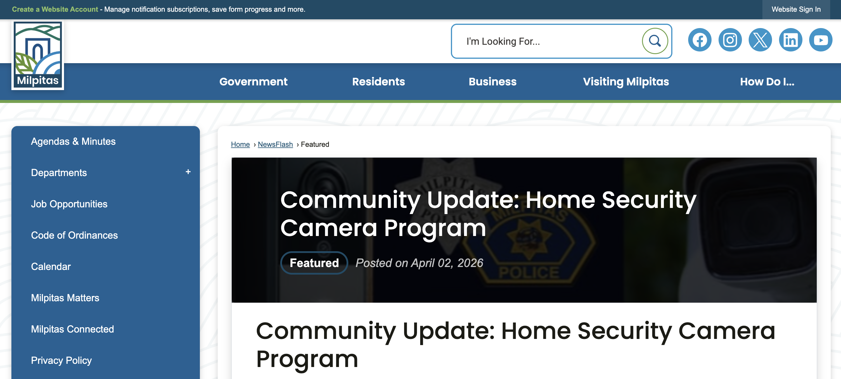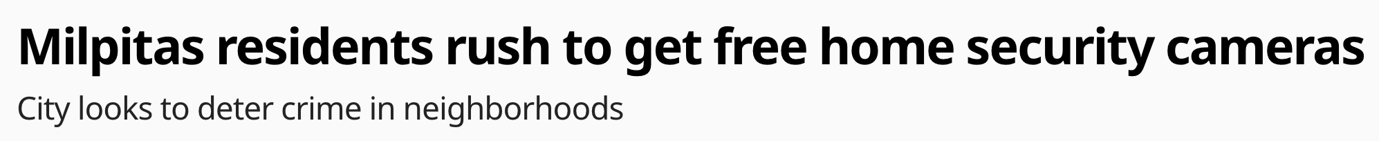 在米尔皮塔斯市议会批准一项总额约6万美元的家用监控计划后,当地警察局近期接到大量居民咨询电话,不少人关心如何申请这批“免费摄像头”。官方表示,这一项目的初衷很直接——通过增加家庭监控设备,打击包裹盗窃、车辆盗窃等社区常见犯罪,同时为警方调查提供线索支持。