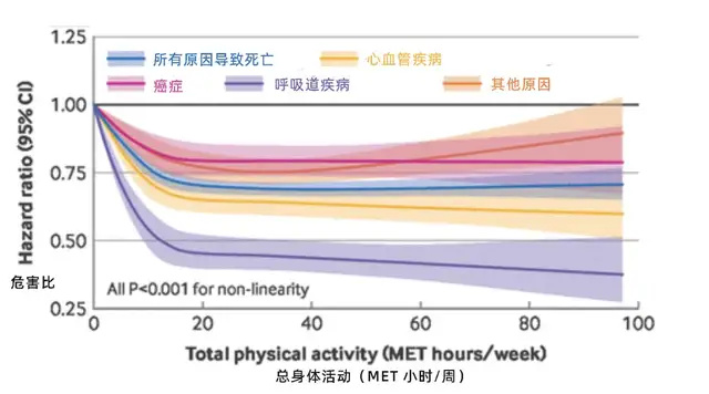 个人体育活动与所有原因死亡率之间的关系。研究截图