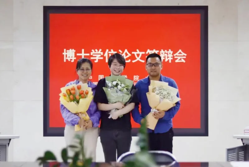 孙晓婧(中)与导师刘四清研究员(左)、林瑞淋副研究员(右)合影