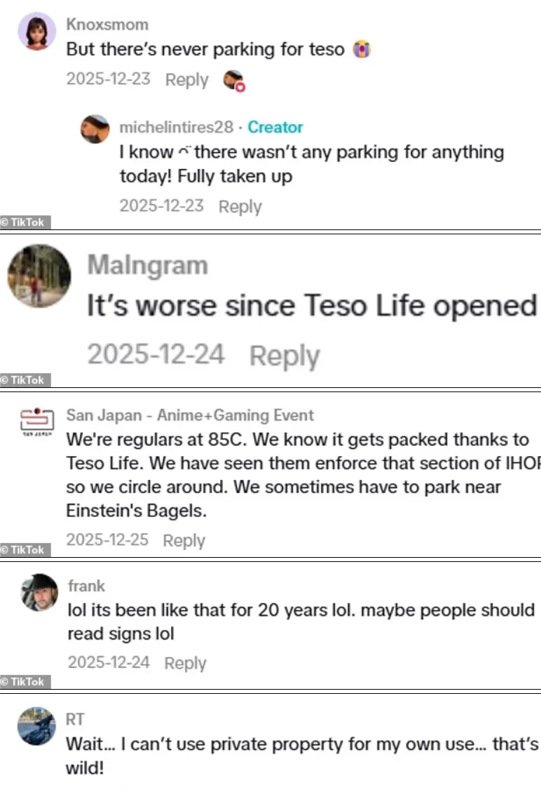 有人表示,这种情况并不只发生在德州,在不少城市其实都存在类似的“隐形坑”。一位住在Chicago的网友就提到,芝加哥中国城一带餐馆很多、生意也很好,但路边停车位一直紧张,不少人为了图方便,会把车停在对面CVS Pharmacy的停车场。