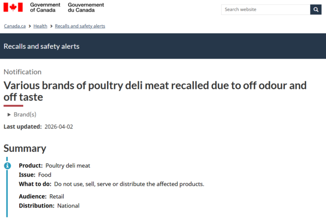 事情发生在4月初,加拿大发布了一则食品安全通告,一口气宣布全国范围内30款熟食肉产品被紧急召回。注意,是全国范围,这意味着影响非常广,不是某一家店、某一个城市的问题,而是很多人日常都会接触到的产品。