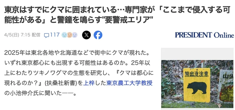 近日,日本专家已经直接发出警告:东京,其实已经被熊包围了。