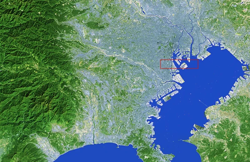 从奥多摩的山林开始,一直沿着河道延伸,熊完全可以一路顺着这些树丛往前走。