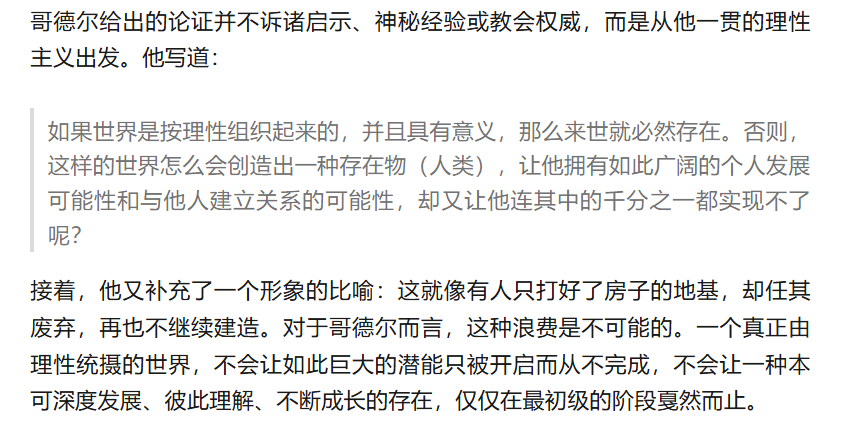哥德尔的论证:如果世界有理性,来世就必须存在