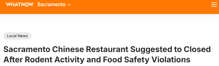 4月1日,Chang’s Chinese Cuisine接受了沙加缅度(Sacramento)县环境管理部门的常规卫生检查。该餐厅因多项违反卫生规定的行为被点名,并被暂时关闭。