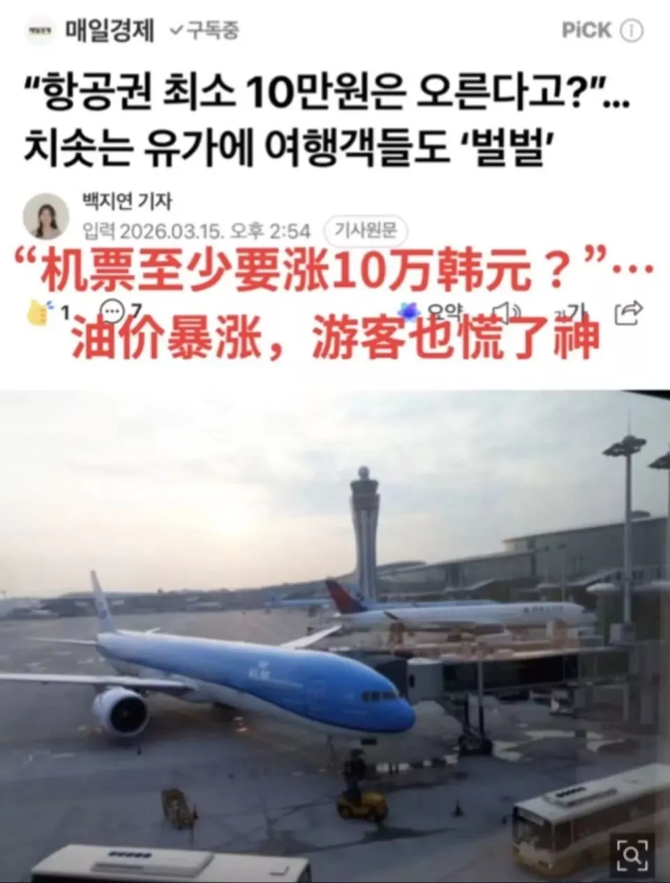 尽管目前涨幅不高,可业内人士预测,5月份的燃油附加费可能会推高至50万韩元(约合人民币2282元)。