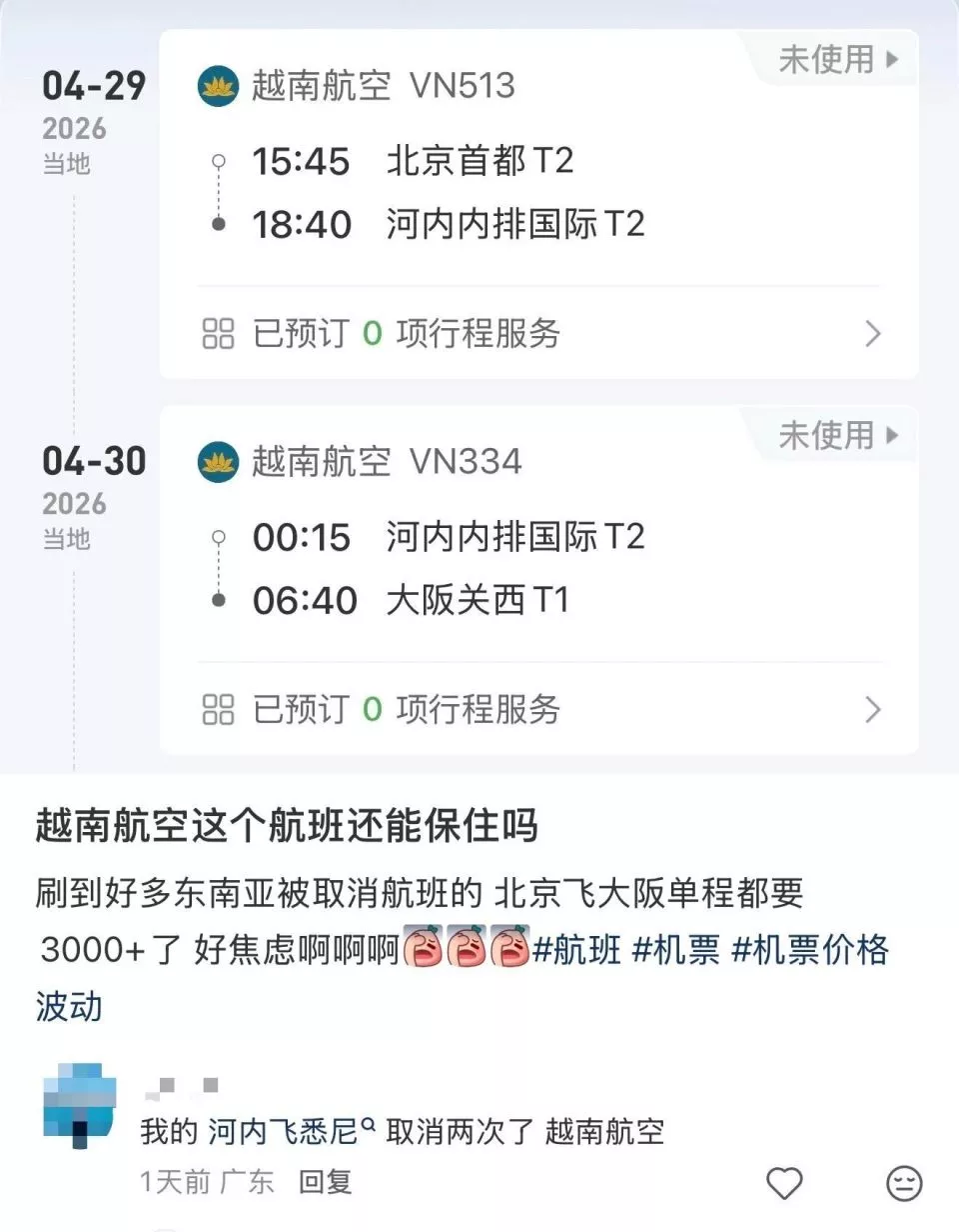 根据越南通讯社3月27日的报道,越南航空从4月1日起停飞七条国内航线;越捷航空计划在4月将总运力削减约18%;越竹航空从4月起将每日航班量减半,集中保障核心航线。