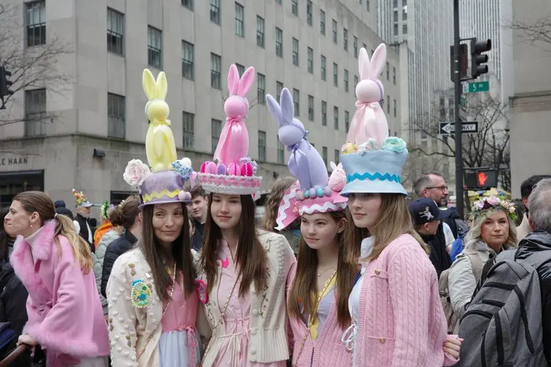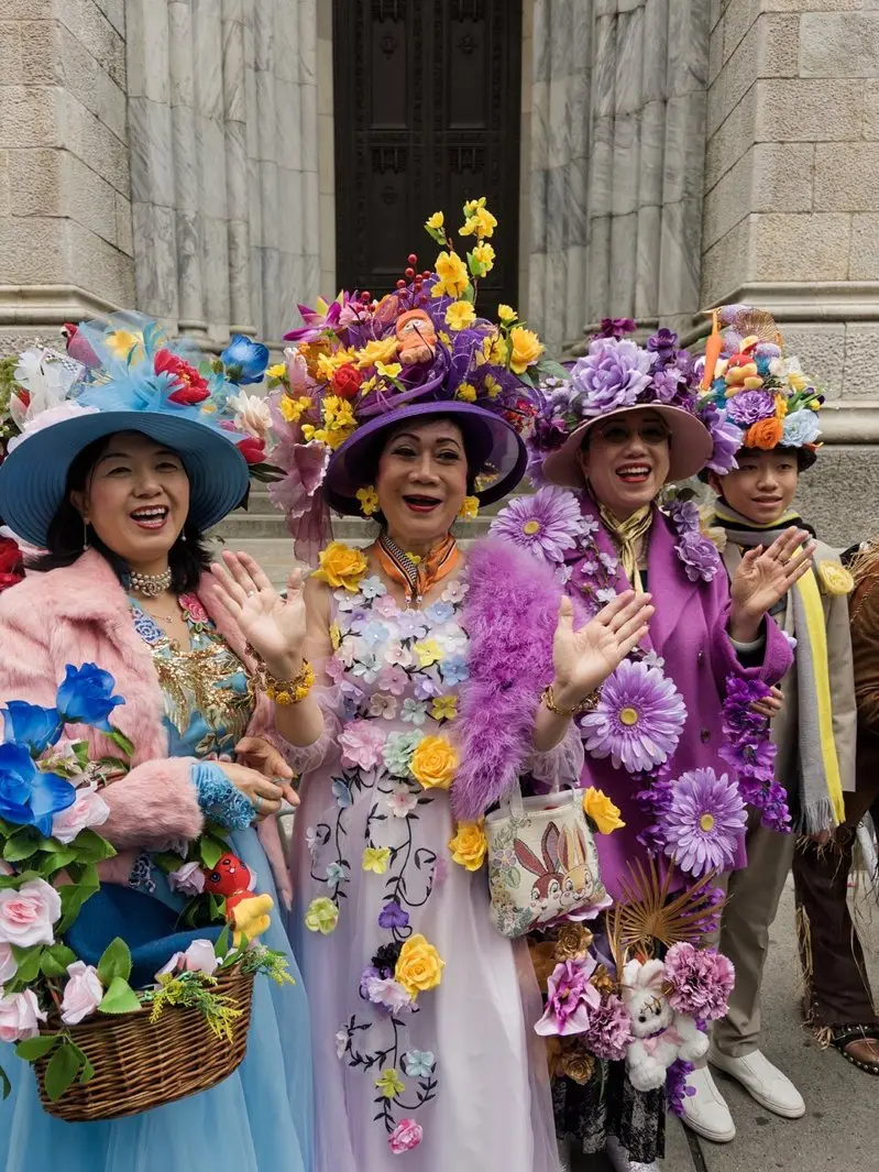 纽约复活节游行的传统可追溯至1970年代,当时上流社会教徒会在节日当天,穿着精致服饰前往教堂参加周日礼拜,结束后则沿着第五大道步行展示装扮。如今,这一传统成为了一场全民参与的街头嘉年华,各年龄层、背景的参与者只需戴上一顶吸睛的帽子便可成为第五大道上的焦点。