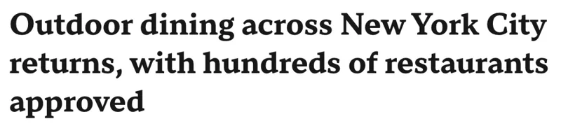 如果你常去的餐厅暂未出现,也不必意外——不少商家仍在审批流程中,名单还会继续更新。周末约朋友吃饭、遛娃顺便brunch,或者下班后随便坐一坐,这些熟悉的纽约生活方式,正在慢慢回归。