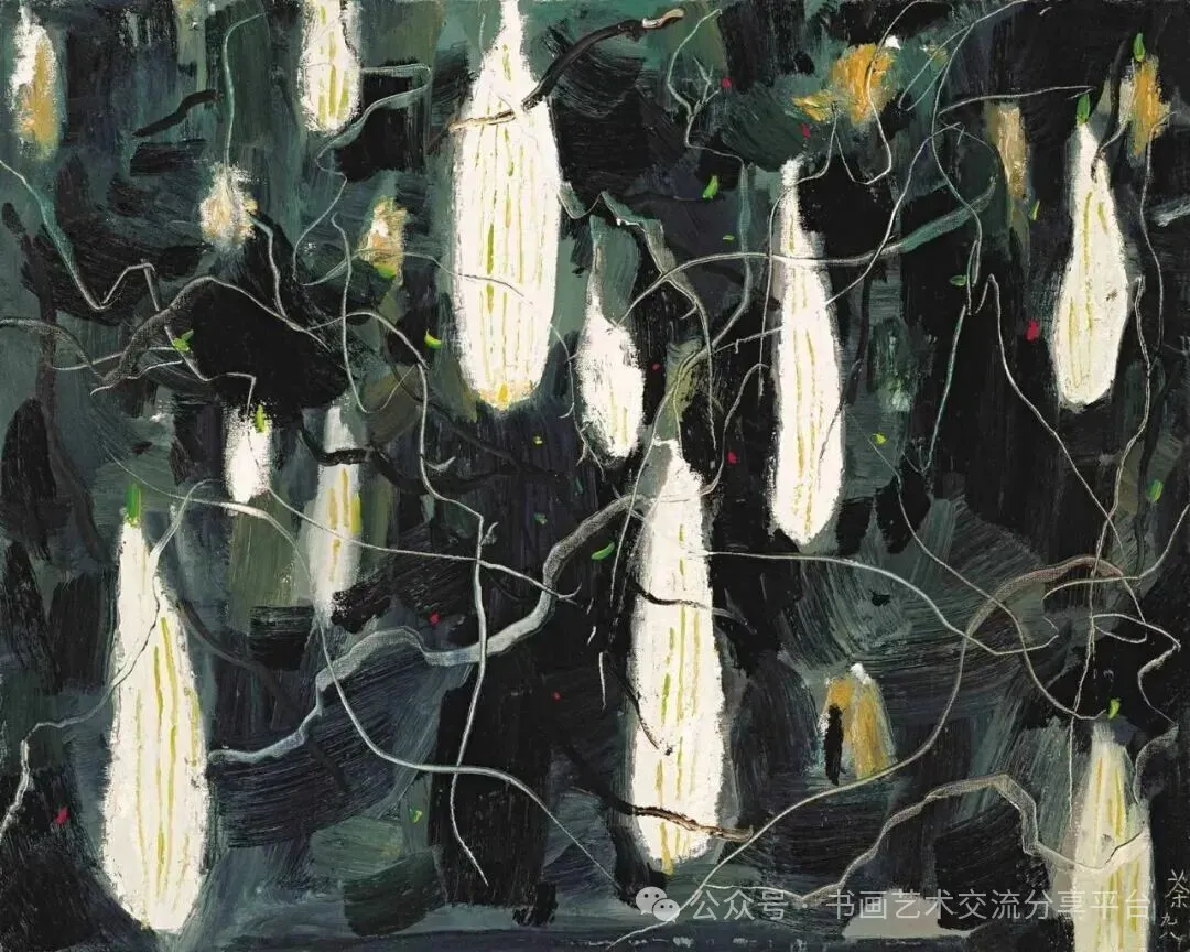 早于年轻时代,吴冠中以「荼」为笔名,「荼」即「苦」也,预示追求艺术的道路永无坦途。 吴冠中 《苦瓜家园》 香港艺术馆藏 吴冠中一生确实经历过崎岖曲折,他曾以苦瓜比喻自己的命运:「谁也没有选择投胎的自由,苦瓜藤上结的是苦瓜子,我晚年作过一幅油画《苦瓜家园》。苦,永远缠绕着我,渗入心田。」