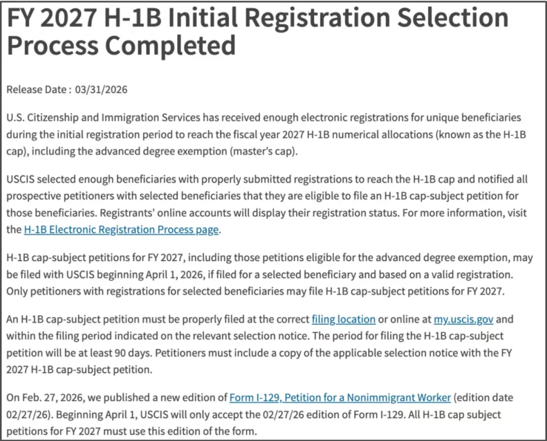 最新消息,H1B第一轮的抽签结果已经出来了,今年虽然是开才是实行“加权抽签”的新制度,但是中签率却比往年都还要高,直接暴涨至50%!