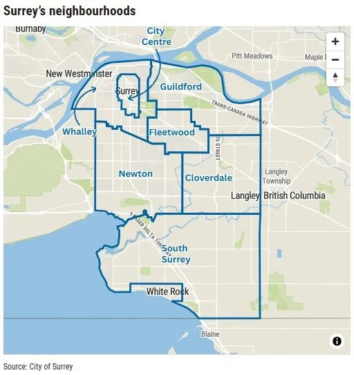 相比之下,北素里市中心地区租房比例高达55%,平均收入约$77,200,51%为移民居民,32%依靠公共交通通勤。Guildford和Newton则分别成为低收入租户和南亚加拿大人社区聚集地。