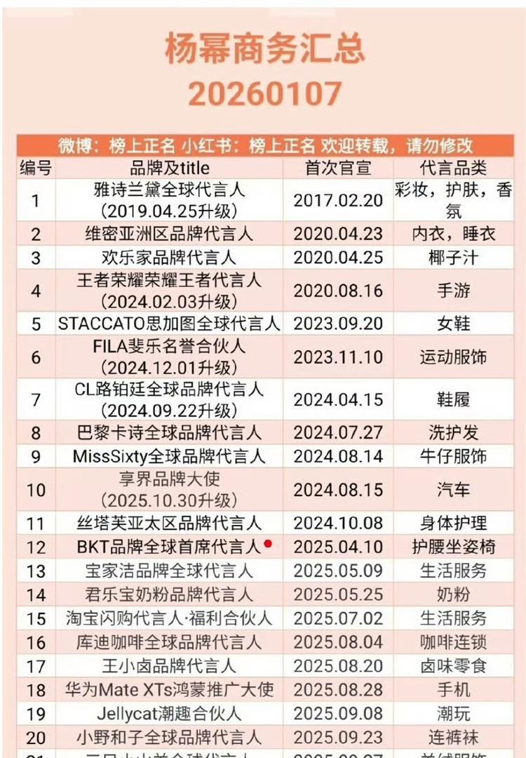 顶流的竞争从来不止于作品。 商务战场上,杨幂2026年手握26个代言断层领跑,从Prada到华为,覆盖顶奢到国民品牌。 赵丽颖也不示弱,纪梵希、戴比尔斯、奥迪等13个领域全面开花。 时尚圈里,杨幂零考察期空降DIOR大使,赵丽颖连续三年登顶金九银十封面。 每次红毯同框,从站位到珠宝都被网友拿来逐帧对比。