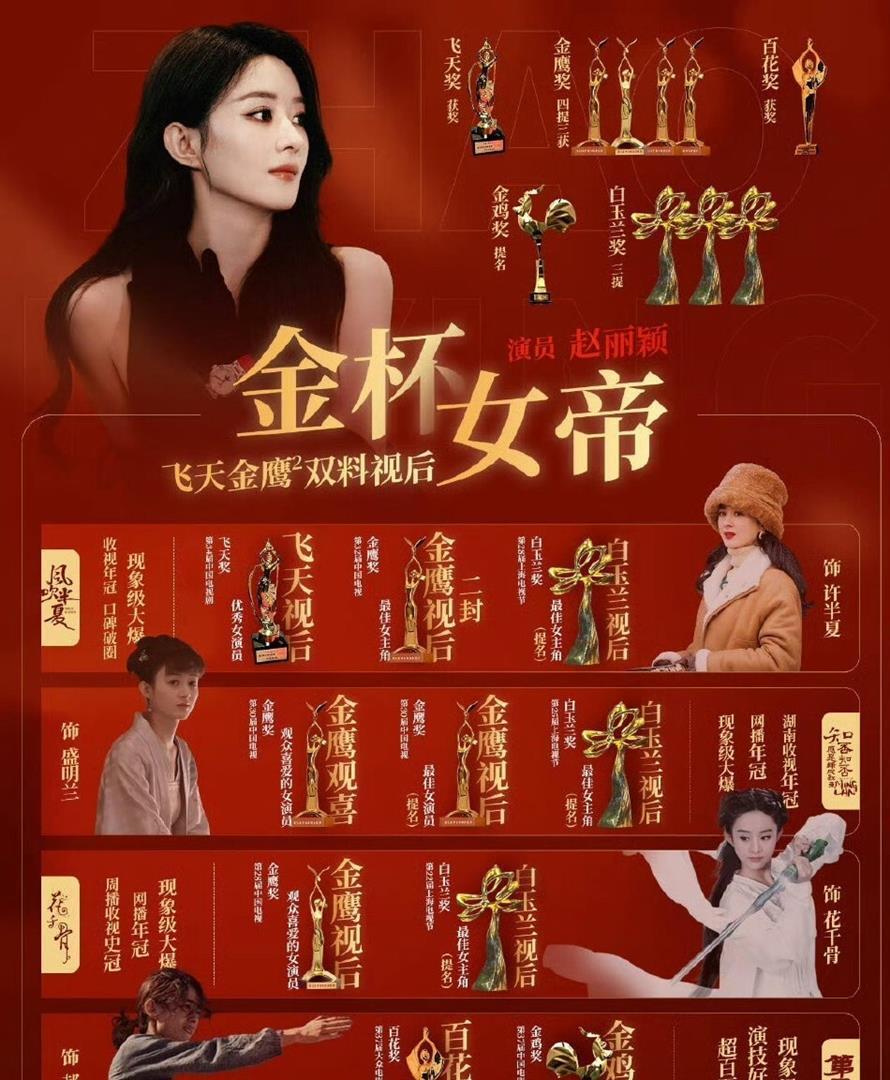 奖项才是真正的硬仗。 赵丽颖已经拿下金鹰奖,2026年3月刚凭《风吹半夏》斩获飞天奖优秀女演员。 杨幂人气爆棚十几年,却始终缺少重量级视后奖杯。 更戏剧性的是,两人还在陈可辛电影《酱园弄》里同片竞争金像奖最佳女配。 这场仗,从电视剧打到了大银幕。