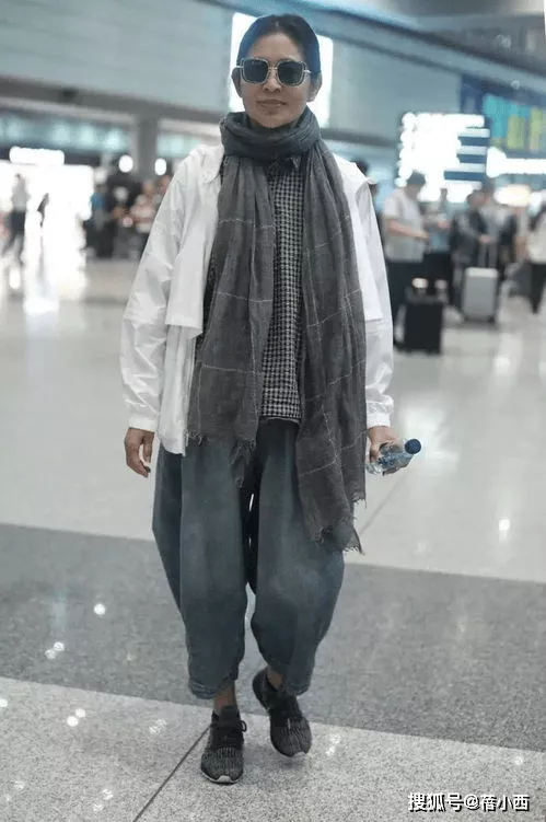 春天,咱们还可以借鉴这一身外套搭配,可谓是春日出行的绝佳范本。白色防晒外套清爽减龄,内搭格纹衬衫,叠搭一条灰色大围巾,瞬间提升了造型的氛围感,下装依旧是她最爱的阔腿牛仔裤,宽松的裤型藏肉显瘦,搭配同系列运动鞋,整套穿搭舒适又时髦。