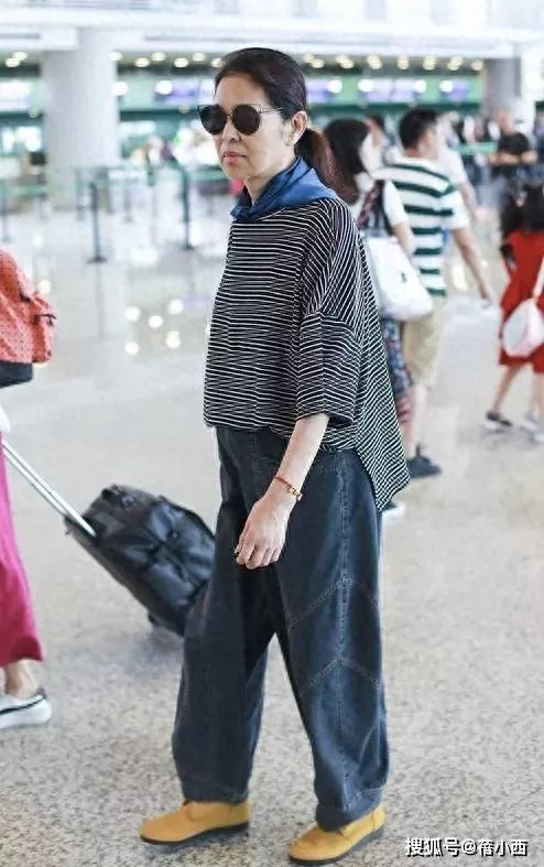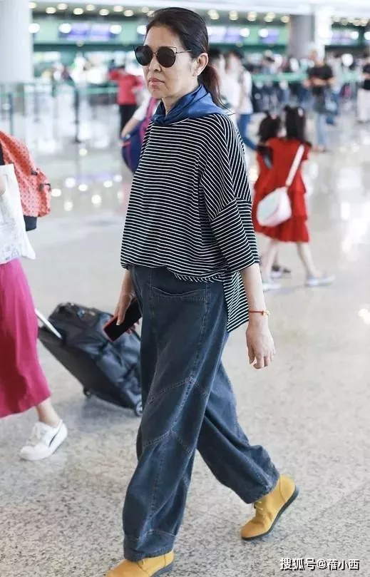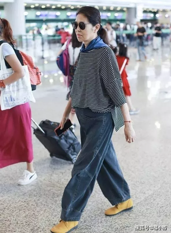 倪萍的这套机场造型藏着满满的穿搭巧思,上装选择的黑白条纹T恤,看似基础却格外用心。宽松的版型完美包容了身形,哪怕是中年发福有赘肉,也能被藏于衣料之下。横向条纹虽不如竖条纹那般显瘦,但利落的剪裁让衣料不贴肤、不拖沓,既保留了休闲随性的基调,又避免了臃肿邋遢的视觉效果,经典的黑白配色更是自带高级质感,低调又耐看。
