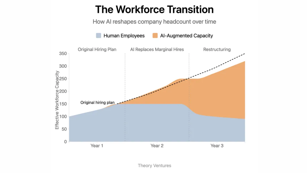 更让人不安的是——裁了人的公司没变差,反而变好了。产出上去了,周期缩短了。留下来的人是能指挥 AI 的,不是跟 AI 比速度的。