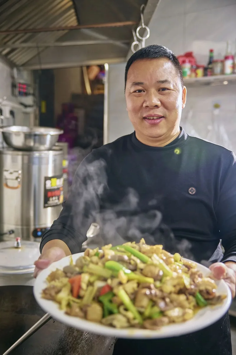 第二天一早送完孩子上学,七哥又带着我们去了他喜欢的几家炒牛杂店。有些人一见面就热情地呼唤他“七哥来了”,有些即便不知道他的名字,但看到是熟面孔也会点头示意,好像玉林的餐馆没有一个他说不上话的。“太上牛料店”老板陈礼东虽是2018年才搬到现在的店铺位置,但是早年一直做晚餐和深夜的排档生意,七哥那时候就是他的老主顾。“他一晚上可能会去好几个局,到我这跟朋友汇合时,他肯定是那个买单的。”陈礼东说。
