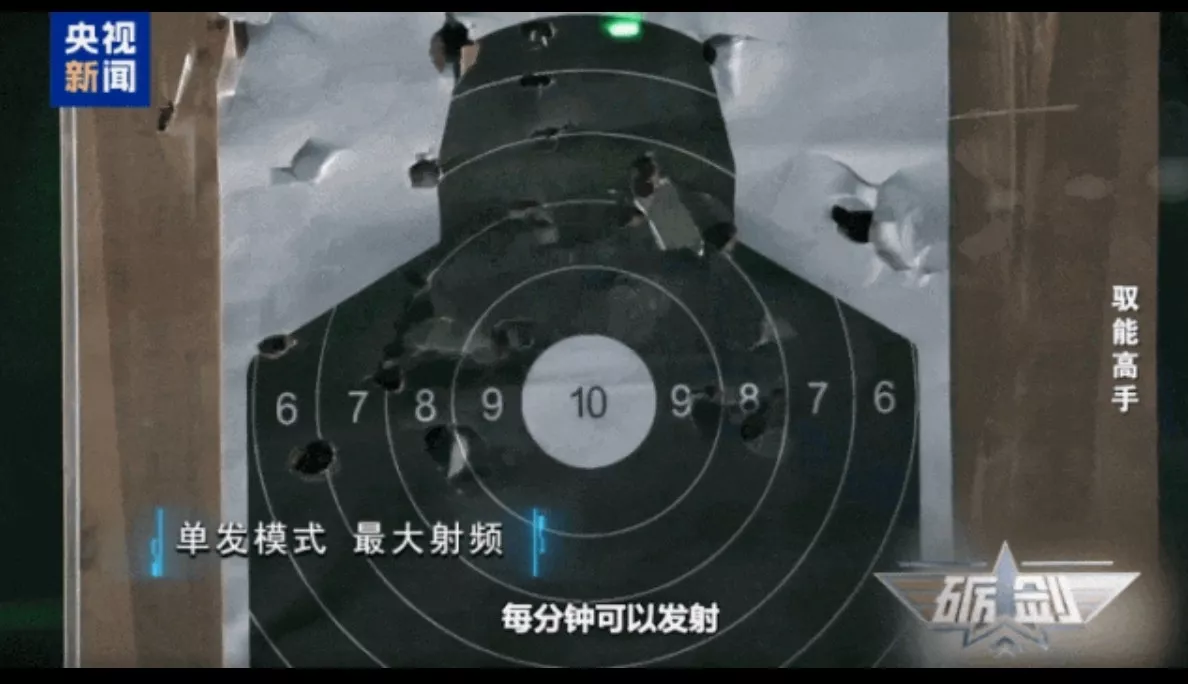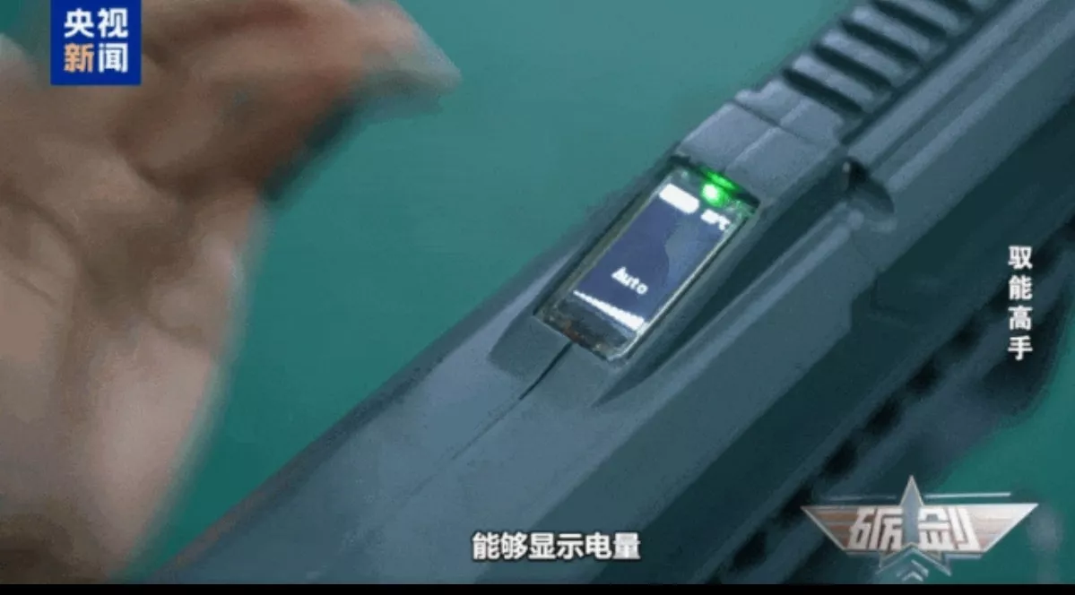 枪身的位置有一个电子显示萤幕,萤幕在实际射击过程当中能够显示电量、剩余的弹药数量以及模式等信息。(央视新闻)