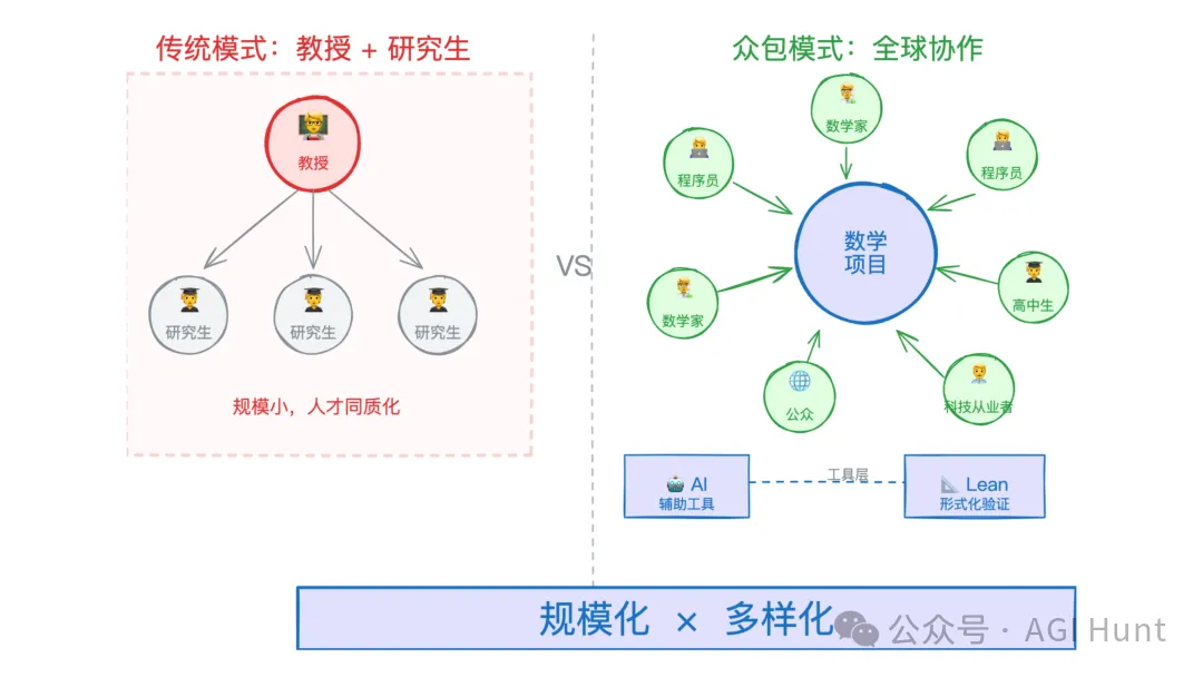 在形式化数学(formalization)领域,大量贡献来自传统数学圈以外的人:计算机科学家、科技行业从业者、高中生,甚至普通公众。