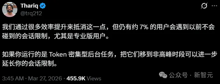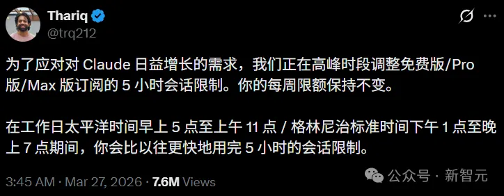 3月下旬,Anthropic被迫宣布,工作日高峰时段Claude用户的5小时会话额度会加速消耗,也就是说,他们开始限流了。
