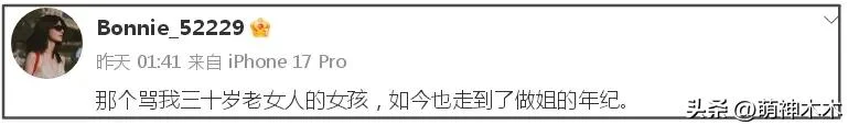 当“张艺上 黄景瑜”话题上热搜后,王雨馨随即发文写道“那个骂我三十岁老女人的女孩,如今也走到了做姐的年纪”,评论区的网友们秒懂,纷纷感叹只要做过必留痕迹,有些事情不会随着时间流逝被遗忘。而张艺上今年也的确刚满30岁,不知如何看待当年“老女人”的嘲讽。