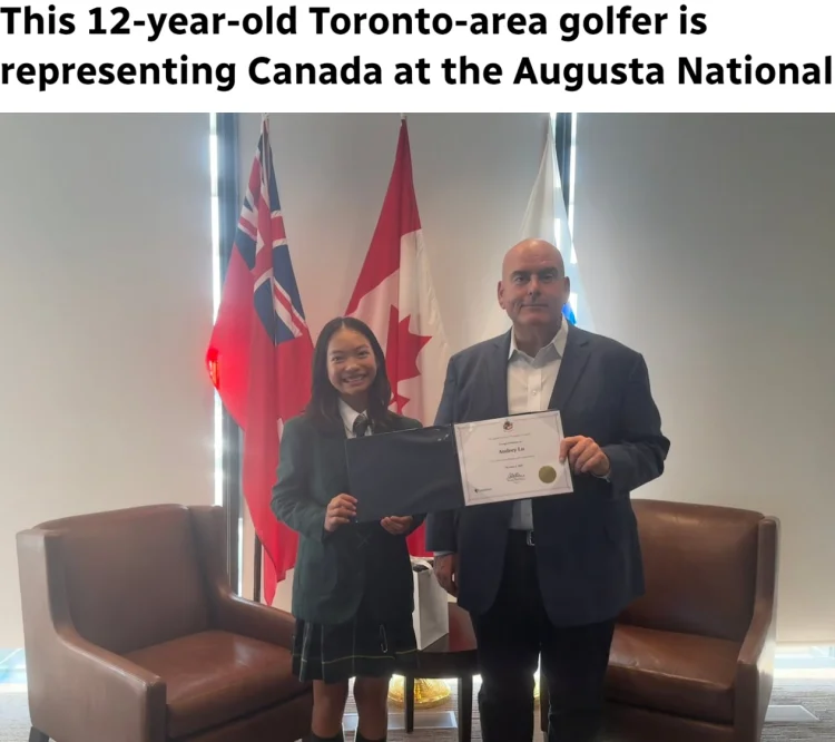 一名来自大多伦多地区的12岁女孩,正在奥古斯塔国家高尔夫俱乐部参加一项备受瞩目的青少年高尔夫比赛,该赛事在大师赛开赛前举行。