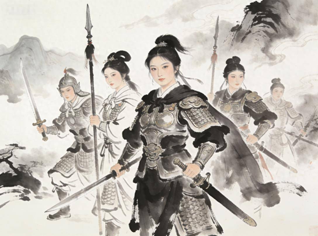 杨宣娘、满堂春、邹夫人、孟四嫂、董夫人、周氏女、杨秋菊、耿氏女、马夫人、白夫人、刘八姐、殷九娘——这些名字出现在不同版本的演义里,她们的结局大多是“战死”二字。