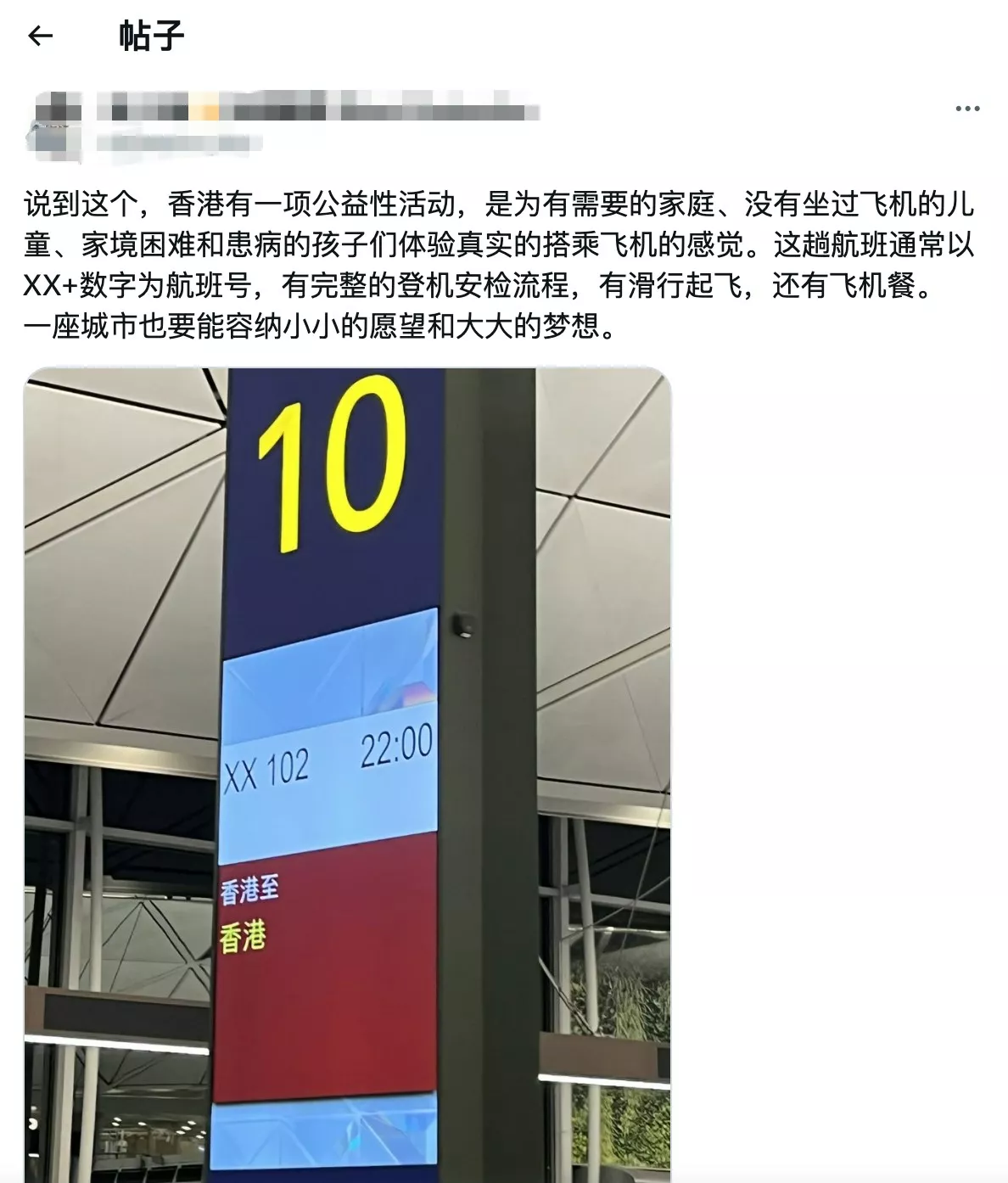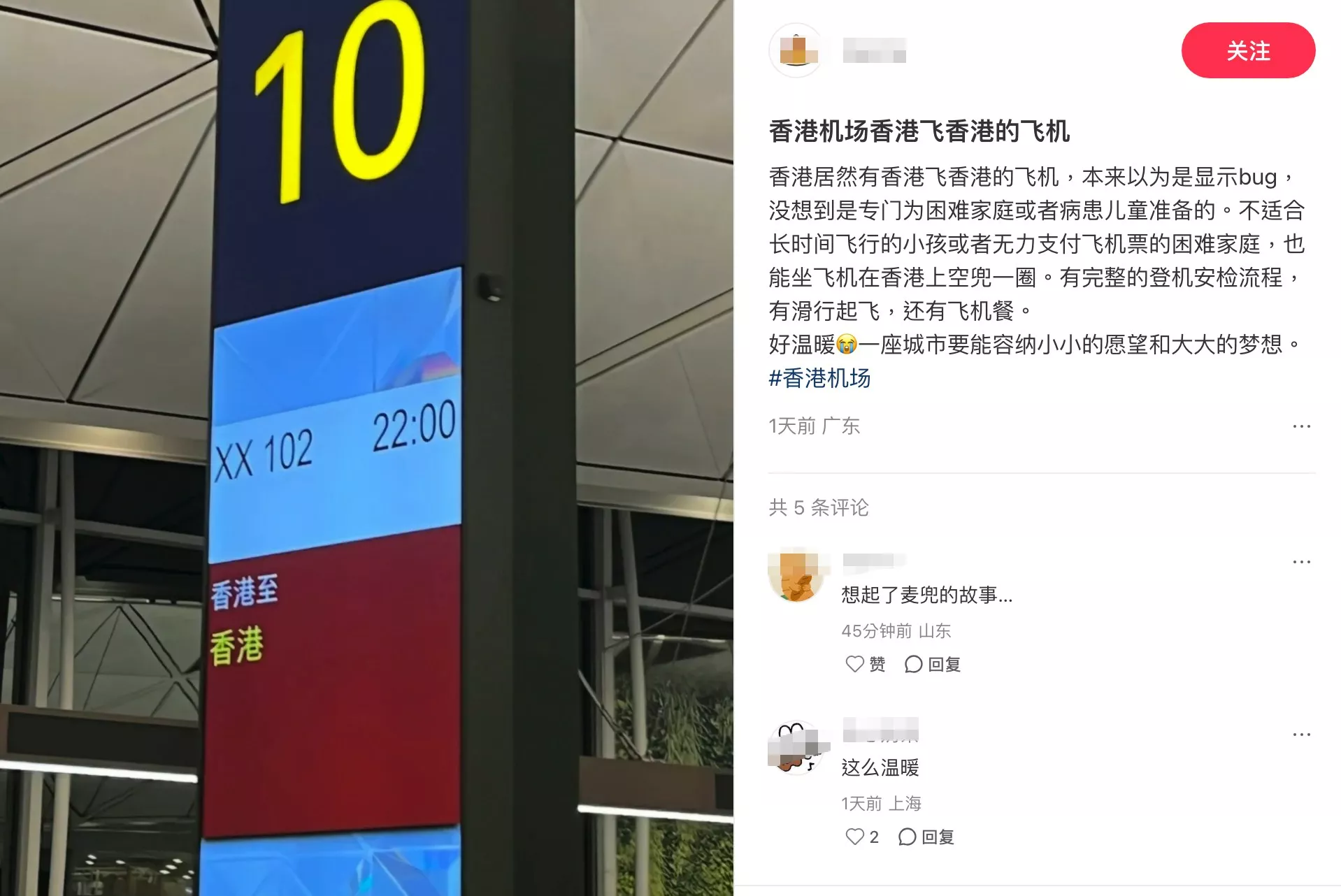 今日(6日),一条“香港飞香港的航班”的话题登上微博热搜榜首,引发内地网民热烈讨论。起初不少网民起初质疑是购票系统出错,随后有知情网民揭开背后真相称,这是一项专为基层大众,或病童设计的公益计划,旨在让从未搭过飞机的弱势群体一圆“冲上云霄”的梦想,暖心安排感动无数网民。